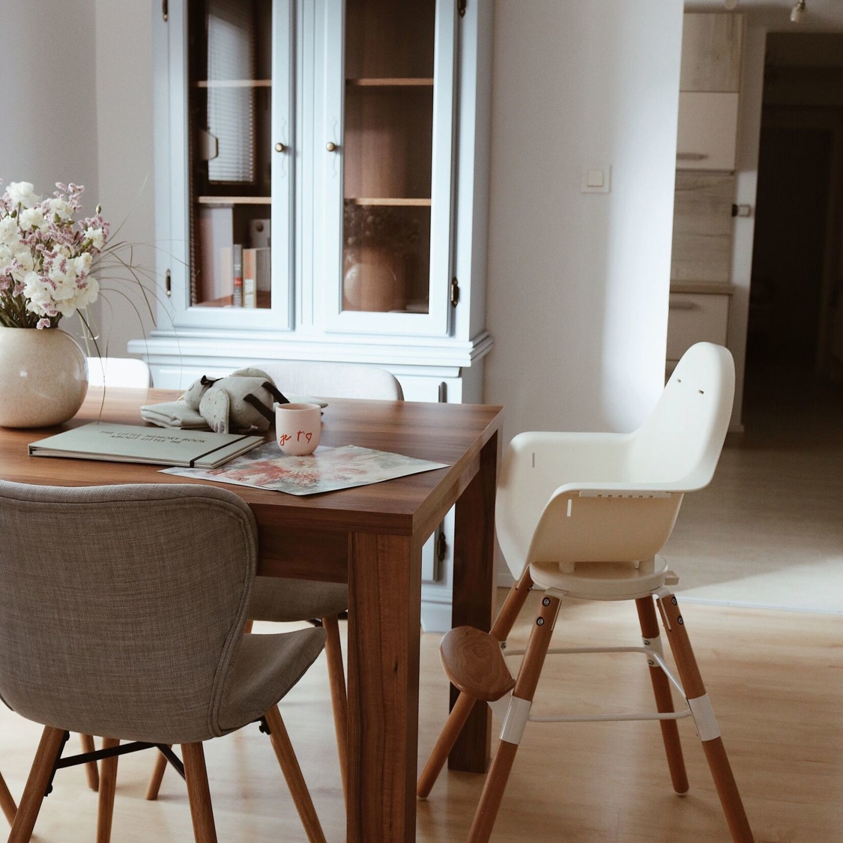 Cette chaise haute tendance 2 en 1 peut être réglée sur 2 hauteurs de table : une table à manger standard de 75 cm et une table pour enfant de 50 cm. Un jeu de pieds extra longs est disponible en option pour ajuster la hauteur de la chaise haute à un îlot de cuisine de 90 cm. Grâce à l'installation simple, le changement de hauteur est très facile. La chaise haute peut également être utilisée dès la naissance en combinaison avec le siège Nouveau-né.