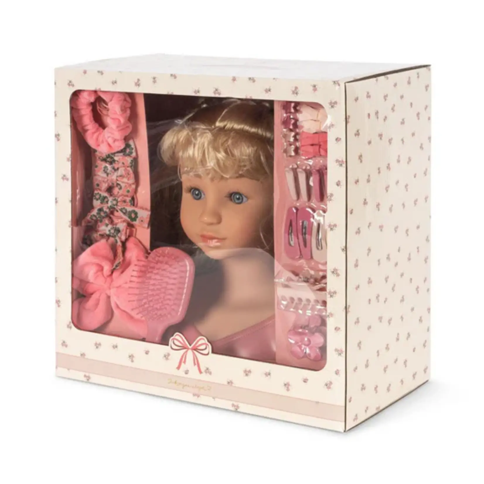 Poppenkapsalon Mimi van Konges Slojd. In deze poppenkapsalon kan je kindje naar hartenlust nieuwe kapsels uitproberen op de buste van de pop met prachtige blonde lokken. De speldjes, strikjes en accessoires hebben mooie zachte tinten. Ook leuk om zelf het haar van je mini op te vrolijken.